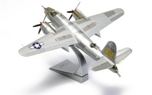 Featuring a special bare metal multi-toned finish, this 1:72 scale model has an open bomb bay option and removable undercarriage. The propellers can rotate too. And of course, this die-cast aircraft comes with detailed crew figures and a stand for display.