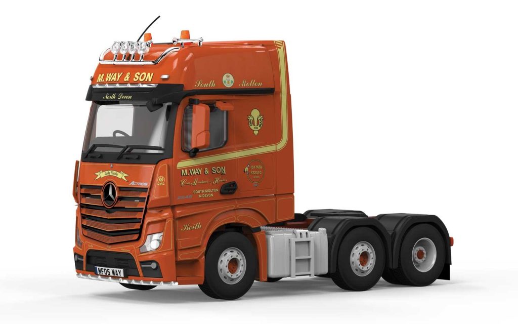 In 1973, when Merv Way bought a second hand Dodge 500 flatbed lorry, M.Way & Son Transport was born. Running out of the family home in South Molton with Merv’s wife Helen taking care of the accounts, the Company grew steadily and in 1992 it moved to its current purpose-built premises in the heart of South Molton. With seventy vehicles of various makes including the Mercedes-Benz Actros (MP4) seen here, M. Way & Son’s fleet of ‘Vauxhall Cargo’ orange trucks transport anything from glass to waste paper, all over Great Britain.