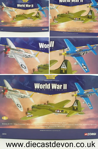 A stunning box set from Corgi. Contains a Boeing B-17F ‘Miss Minookie’ P47D Thunderbolt ‘Rozzie Geth 11’ and a P51D Mustang. A Limited Edition of just 4000 Worldwide. A very attractive set of models. (Please Email For International Delivery Due To Weight.)
