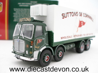A wonderful model from Corgi of an AEC MK V 8 Wheel Platform Lorry with Container Load in the very popular livery of Suttons Of Cornwall based in Penzance. A Limited Edition of just 1800. A very attractive model to display.