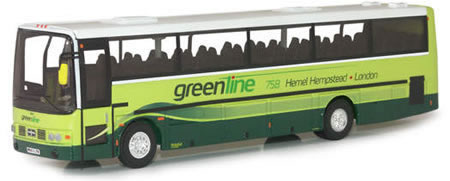 Arriva the Shires 4063 is a DAF SB3000 with a Van Hool Alizee body new to the private charter fleet of Grey Green Coaches at Stamford Hill on 1 August, 1994. Four identical coaches were transferred to ‘the Shires’ in 1998 for use on Green Line 758 between Hemel Hempstead and London, Victoria. The model is presented in the latest Green Line livery by Best Impressions which 4063 received in 2006. Registered M943 LYR, 4063 was one of the last coaches delivered to Grey Green before the business completed its switch to London contracted bus operation and was subsequently absorbed into Arriva London; ending a sequence of Grey Green registration numbers which began with SJJ 300, a Leyland Tiger Cub/ Harrington, in 1956. Smooth-riding and solidly-built, 4063 is likely to receive enhancements which will enable it to continue to run into London after July, 2008, when unmodified Euro 1 vehicles will be excluded from the London Low Emission Zone.
