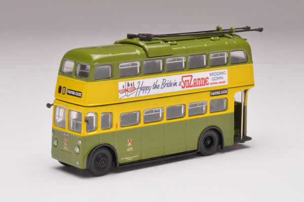 The Wolverhampton Corporation Transport Department purchased parts of two tramway companies in 1923, eventually electrifying them. Trolleybus operation commenced in 1923, using ‘trackless’ style vehicles as tram replacements. Trolleybuses of a more modern outline, reputedly the first in Britain, arrived in 1926. From 1931 there was a joint service with Walsall’s trolleybuses. The Guy Motors factory was situated in the town, so Guy buses and Sunbeam trolleybuses were favoured in the town’s purchases until 1969 when production ceased. The decision to abandon the trolleybus fleet was made in 1961 and the last one ran in 1967. The Wolverhampton Corporation Transport Department was absorbed by the new West Midlands Passenger Transport Executive in 1969. This is a Dual Destination/Split Run model. OM40102A – No 8, Fighting Cocks